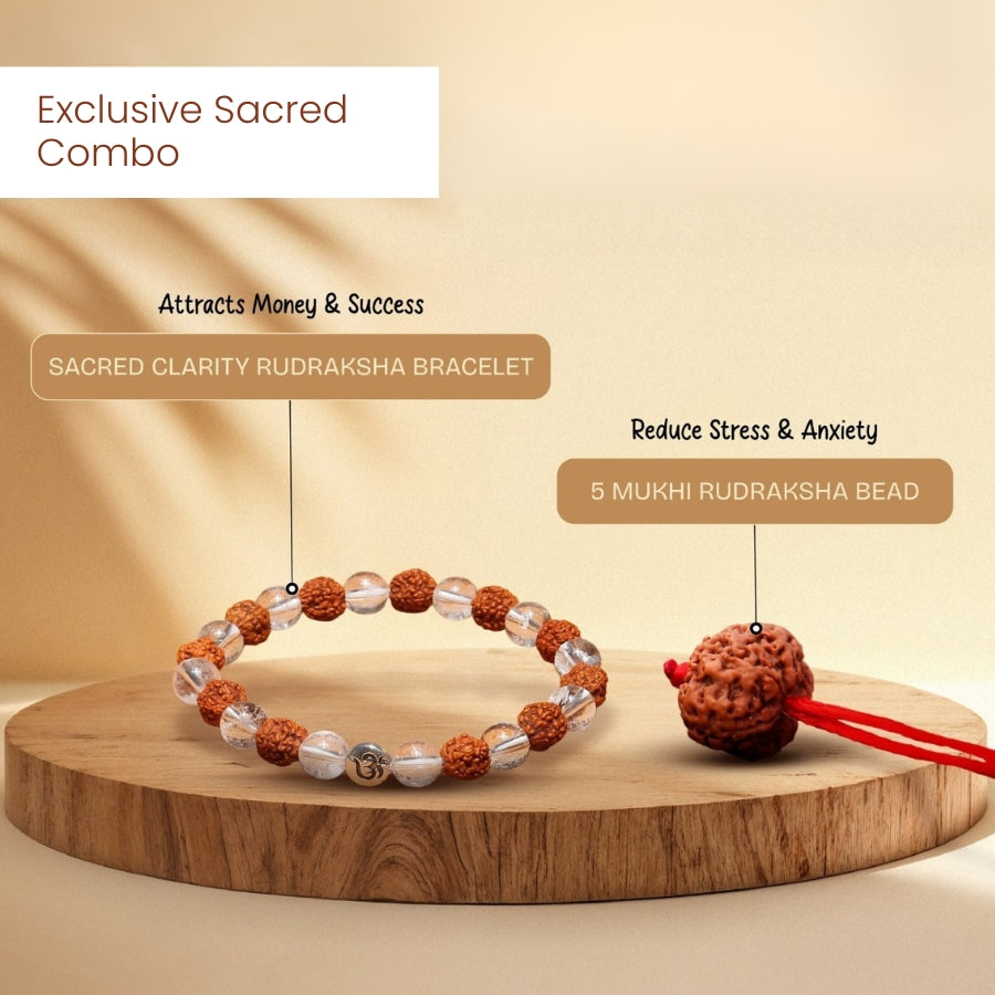 This combo is blessed with Vedic rituals. The 5 Mukhi Rudraksha supports spiritual growth, and the Sacred Clarity Bracelet helps with focus and emotional balance. It’s a thoughtful gift for yourself or someone you care about.