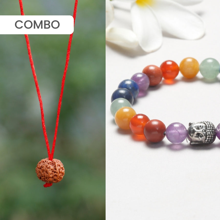 Inner Radiance Ritual Combo |5-Mukhi Ruraksha + 7-Chakra bracelet | Natural | Energized